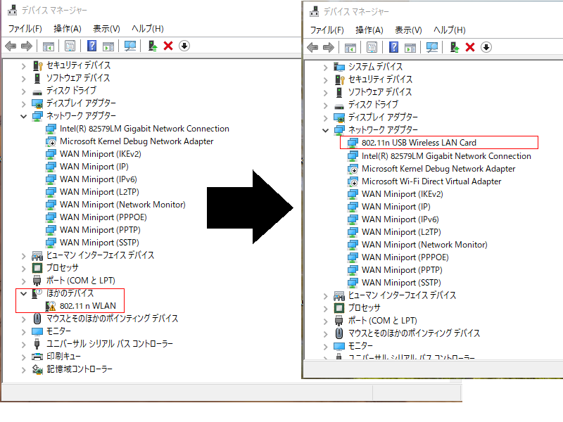 再起動してデバイスマネージャーからドライバーを更新すると…